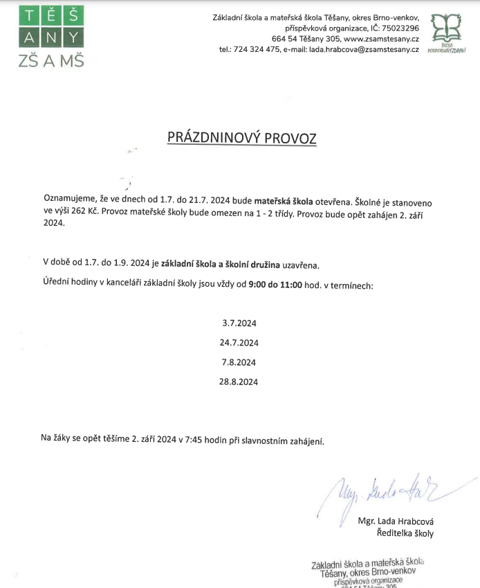 Prázdninový provoz 2024